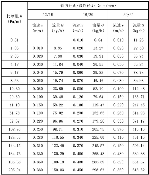 表C.0.1 塑料管及鋁塑復(fù)合管水力計(jì)算表