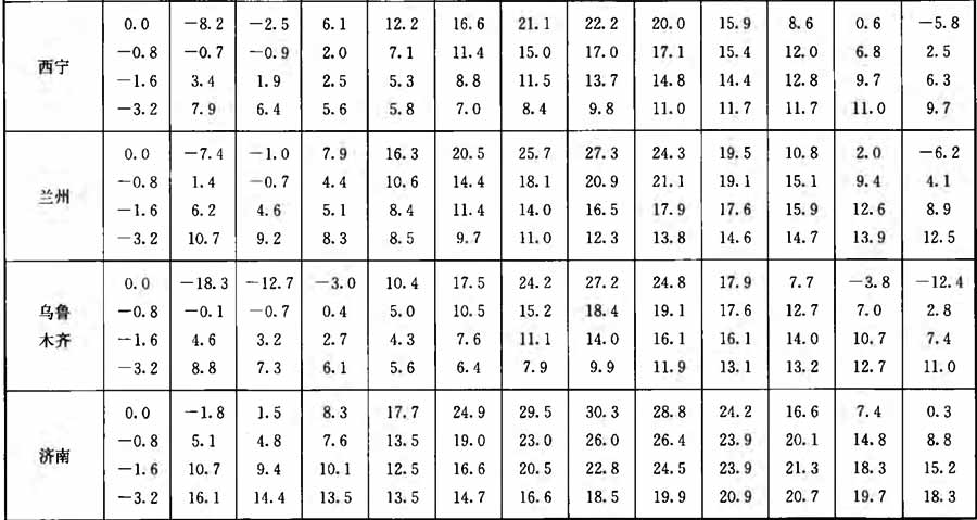 附錄A 全國主要城市實測地溫(深度0.0m~3.2m)月平均值
