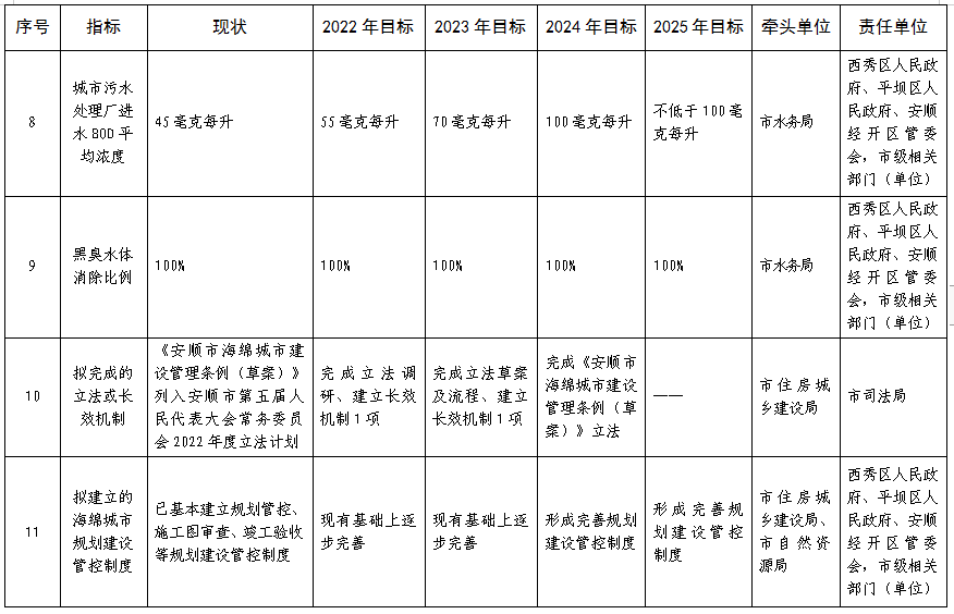 9月16日,安順市人民政府印發(fā)《安順市系統(tǒng)化全域推進(jìn)海綿城市建設(shè)示范城市建設(shè)工作方案》,方案要求,以海綿城市建設(shè)理念引領(lǐng)安順市城市發(fā)展,堅(jiān)持山、水、林、田、湖、草等生命共同體的保護(hù),將海綿城市理念貫徹到城市建設(shè)的全過程中,統(tǒng)籌區(qū)域流域、城市、設(shè)施、社區(qū)四個(gè)層級,按照海綿城市建設(shè)示范城市建設(shè)總體目標(biāo)和全域規(guī)劃、市區(qū)聯(lián)動(dòng)、一體推進(jìn)的原則,系統(tǒng)化全域推進(jìn)海綿城市建設(shè)。到2024年,80%建成區(qū)面積達(dá)到10年一遇內(nèi)澇防治標(biāo)準(zhǔn),全面消除歷史內(nèi)澇積水點(diǎn),城市防洪標(biāo)準(zhǔn)達(dá)到設(shè)防要求,天然水域面積不減少,可透水地面面積比例不低于38.9%,雨水資源化利用量達(dá)到每年25萬立方米,城市生活污水集中收集率達(dá)到57%,城市污水處理廠進(jìn)水BOD平均濃度達(dá)到100毫克每升,城市水體不黑不臭,建成海綿城市建設(shè)示范城市,打造“喀斯特山地城市”洪澇治理、“生態(tài)化低成本”海綿城市建設(shè)模式、“南方工程性缺水地區(qū)”雨水資源利用三大示范。