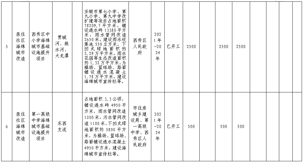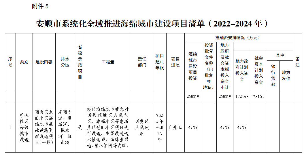 5.安順市系統(tǒng)化全域推進(jìn)海綿城市建設(shè)項(xiàng)目清單(2022-2024年)