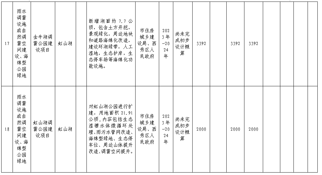 5.實(shí)施公園綠地海綿化建設(shè)改造。結(jié)合實(shí)施城市更新行動(dòng),在山體公園、口袋公園、街頭綠地建設(shè)中融入海綿城市建設(shè)理念,提升控制自身及周邊雨水的能力。重點(diǎn)實(shí)施金牛湖、虹山湖、楊湖、金鐘市民公園、城區(qū)街頭綠地、口袋公園等6個(gè)海綿化建設(shè)改造項(xiàng)目。