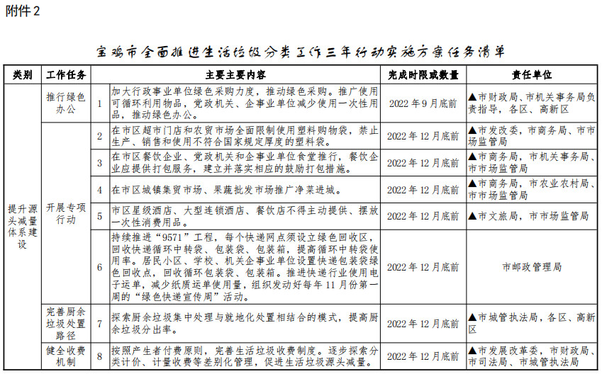 2.寶雞市全面推進生活垃圾分類工作三年行動實施方案任務(wù)清單
