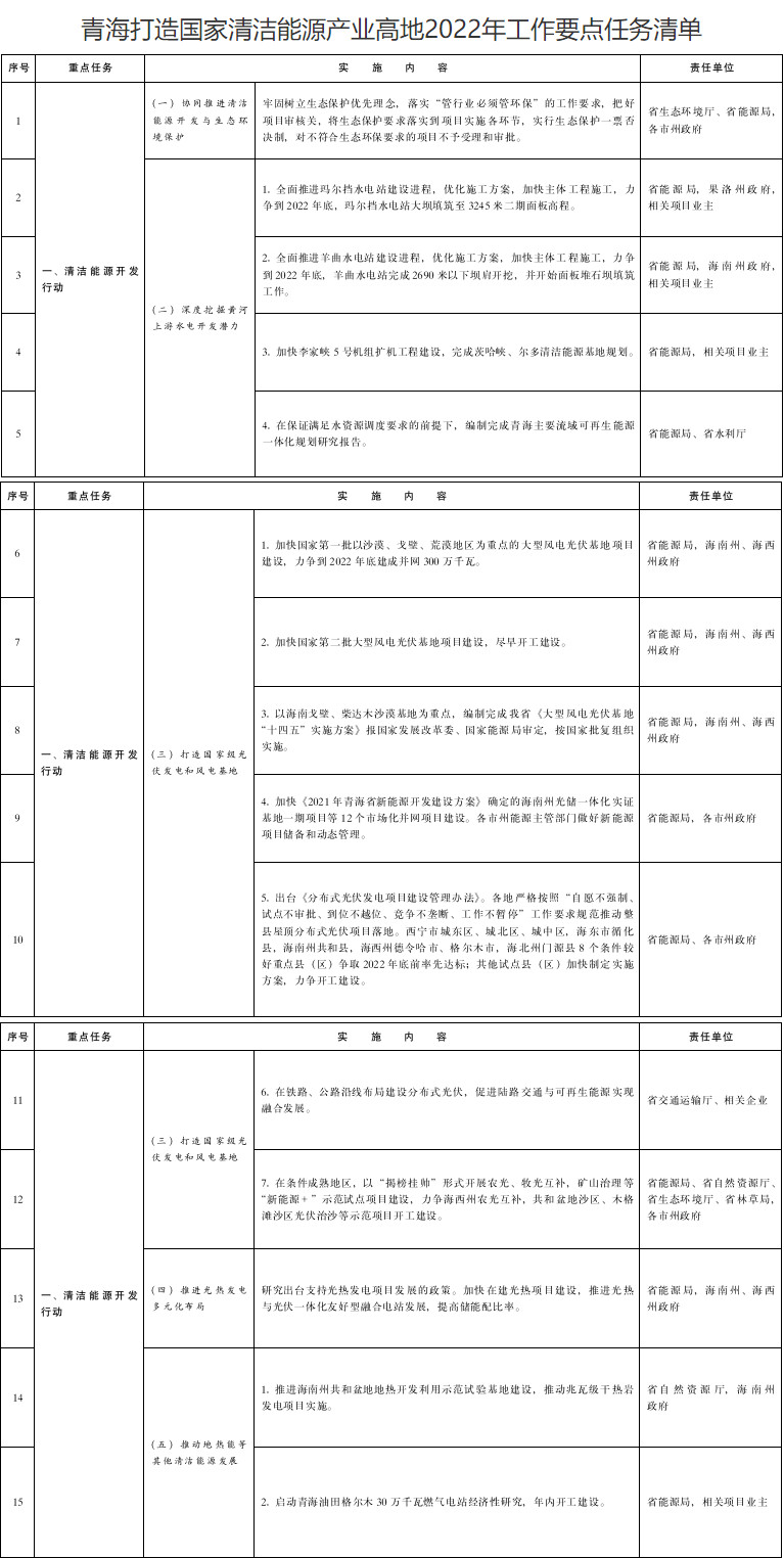 青海省人民政府辦公廳 關(guān)于印發(fā)青海打造國家清潔能源產(chǎn)業(yè)高地2022年工作要點的通知