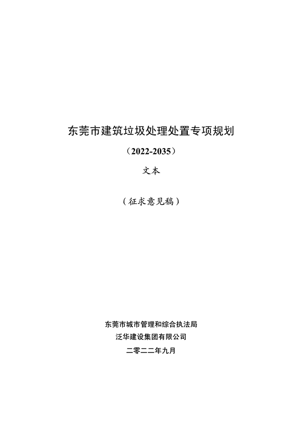 東莞市建筑垃圾處理處置專(zhuān)項(xiàng)規(guī)劃(2022-2035)征求意見(jiàn)