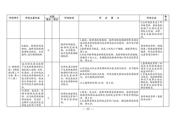 (三)建立分級(jí)負(fù)責(zé)評(píng)估機(jī)制。省生態(tài)環(huán)境廳(以下簡(jiǎn)稱“省廳”)對(duì)地級(jí)以上市生態(tài)環(huán)境局進(jìn)行綜合評(píng)估,抽取產(chǎn)廢單位和經(jīng)營(yíng)單位進(jìn)行評(píng)估。地級(jí)以上市生態(tài)環(huán)境局抽取產(chǎn)廢單位和經(jīng)營(yíng)單位進(jìn)行評(píng)估。