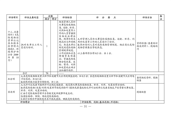 (二)地市層面。地級(jí)以上市生態(tài)環(huán)境局按照《評(píng)估指標(biāo)》表2、表3對(duì)產(chǎn)廢單位、經(jīng)營(yíng)單位進(jìn)行對(duì)應(yīng)評(píng)估,并完成《被抽查單位評(píng)估情況記錄表》(見(jiàn)附件2)。固體廢物管理、環(huán)境執(zhí)法、環(huán)境影響評(píng)價(jià)與排污許可等業(yè)務(wù)部門要對(duì)危險(xiǎn)廢物規(guī)范化環(huán)境管理評(píng)估工作做好必要的政策指導(dǎo)。鼓勵(lì)結(jié)合“雙隨機(jī)”抽查、各類專項(xiàng)工作等,有序推進(jìn)轄區(qū)內(nèi)年度評(píng)估工作。有條件的地區(qū),可以采取購(gòu)買第三方服務(wù)等方式,為危險(xiǎn)廢物規(guī)范化環(huán)境管理評(píng)估工作提供技術(shù)支撐。