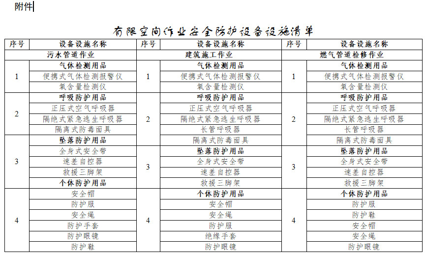 附件:有限空間作業(yè)安全防護(hù)設(shè)備設(shè)施清單