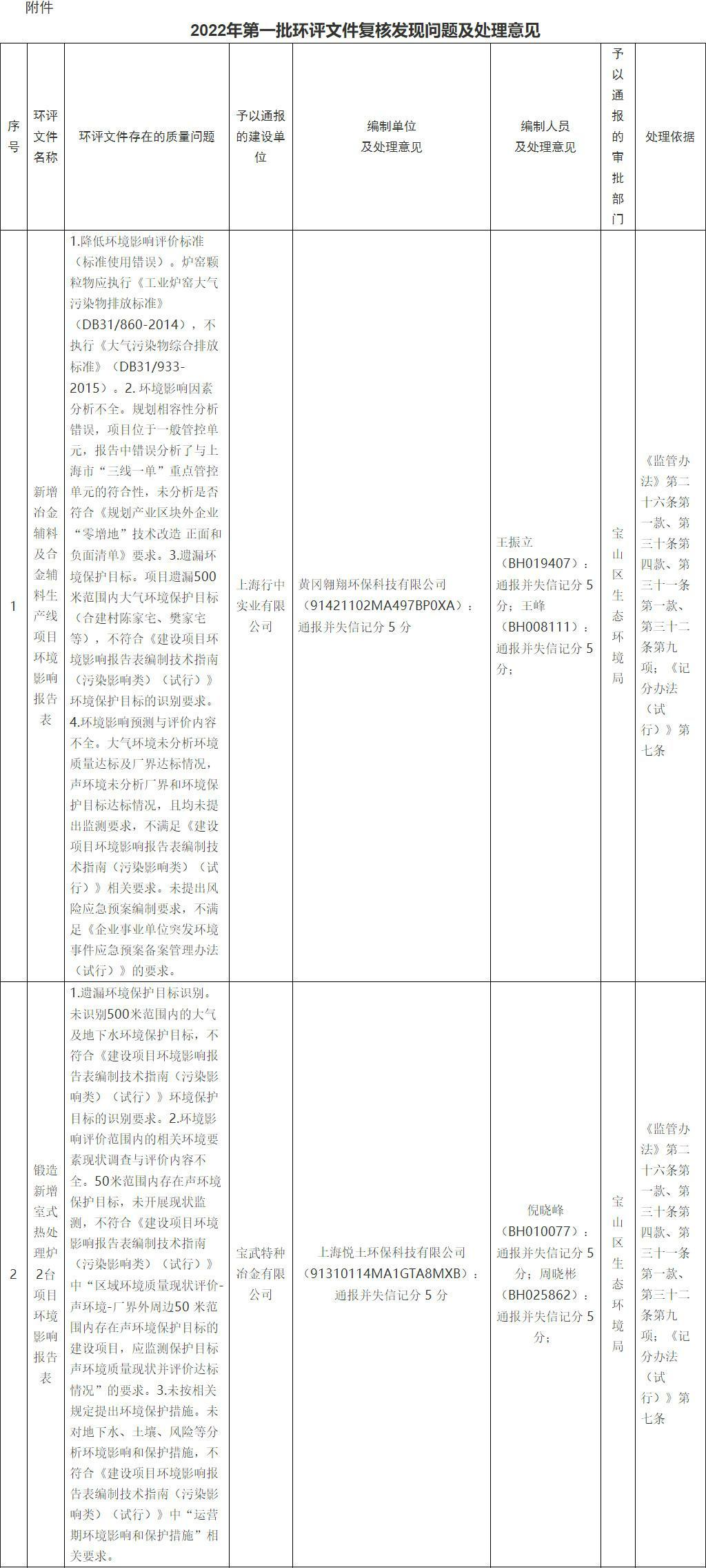 上海市生態(tài)環(huán)境局通報(bào)2022年第一批環(huán)評(píng)文件復(fù)核發(fā)現(xiàn)問(wèn)題及處理意見(jiàn)!