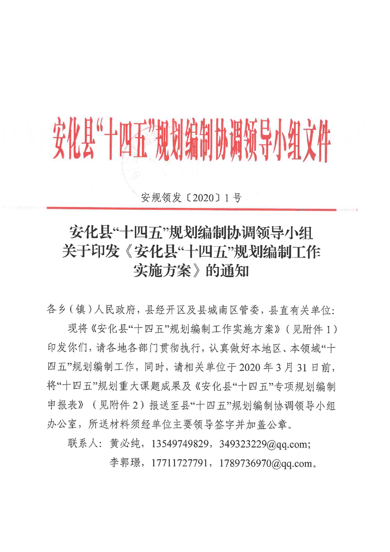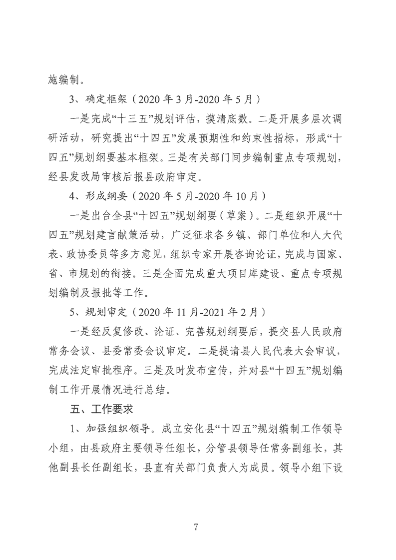 (益陽市)安化縣“十四五”規(guī)劃編制協(xié)調(diào)領(lǐng)導(dǎo)小組關(guān)于印發(fā)《安化縣“十四五”規(guī)劃編制工作實施方案》的通知