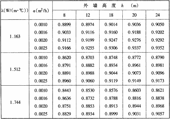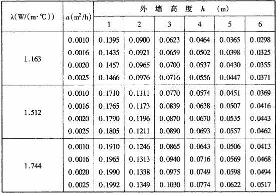 Θdb——地表面溫度年周期性波動(dòng)引起的側(cè)壁面溫度參數(shù),根據(jù)土壤的λα(壁面導(dǎo)溫系數(shù))以及建筑物高度h查表G.0.1-2;