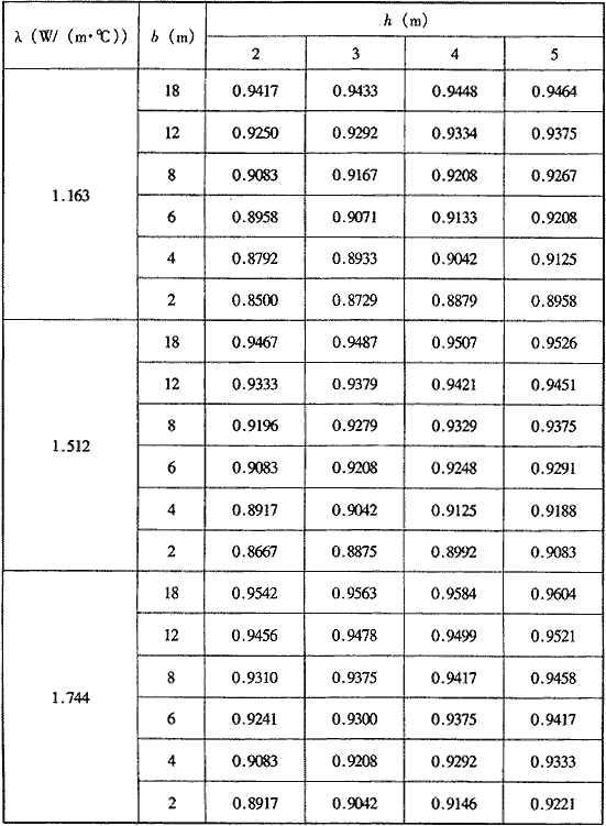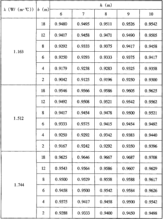 Tpb——年平均溫度參數(shù),根據(jù)土壤的導(dǎo)熱系數(shù),建筑物的寬度b和高度h值,查表G.0.1-1確定;
