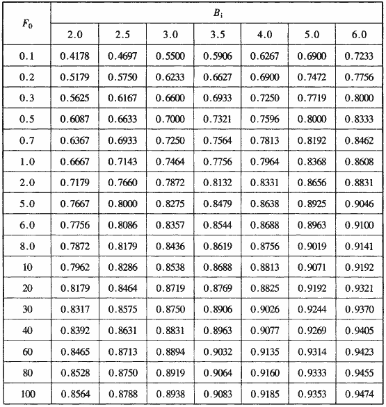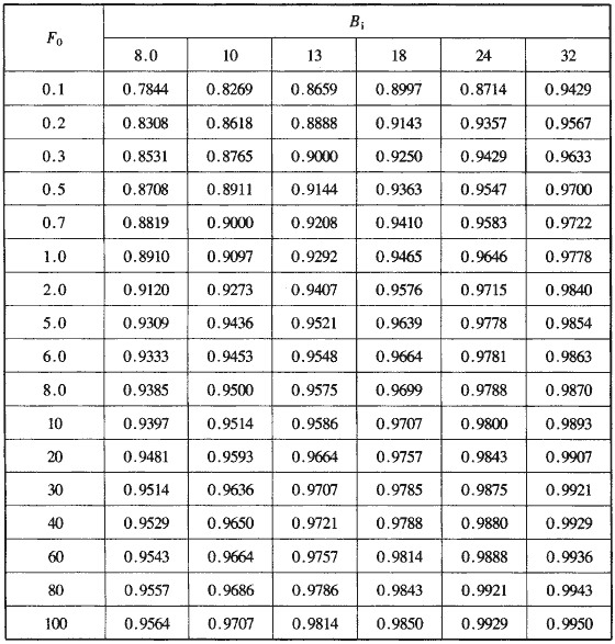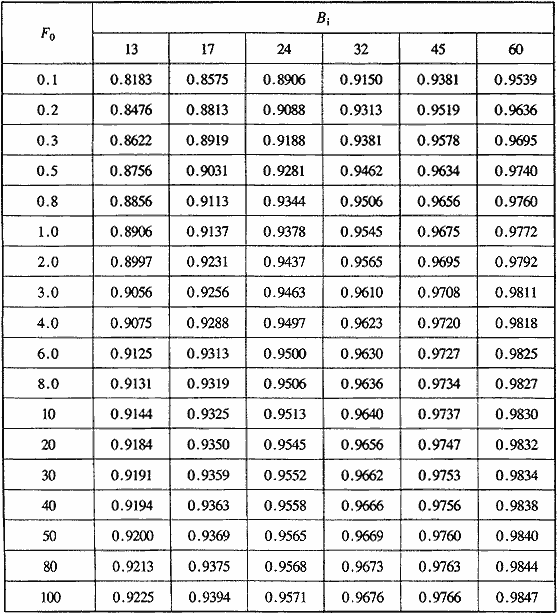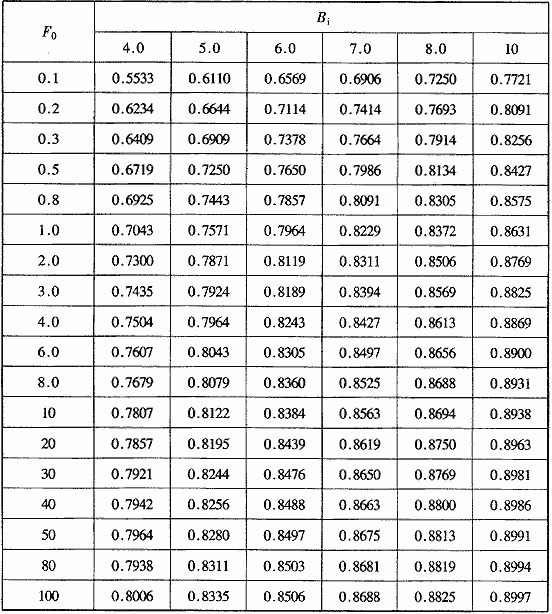 f(F0,Bi)——壁面恒溫傳熱計(jì)算參數(shù),根據(jù)準(zhǔn)數(shù)F0ατ/r02、Biαr0/λ值,查表H.0.1-1或H.0.1-2確定。
