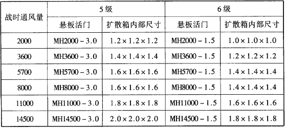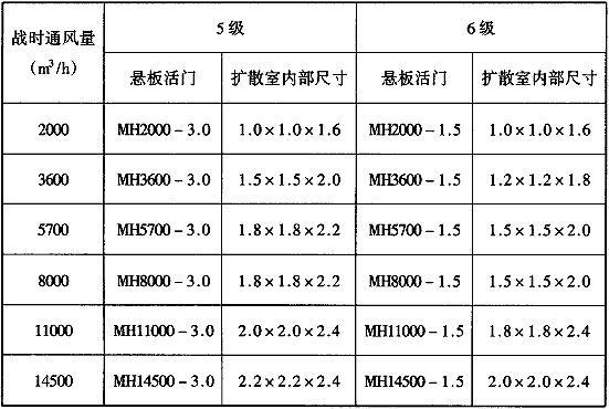 注:本表適用于采用國冢建筑標(biāo)準(zhǔn)設(shè)計(jì)《防空地下室建筑設(shè)計(jì)》(04FJ03)圖集中的MH系列懸板活門。
