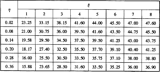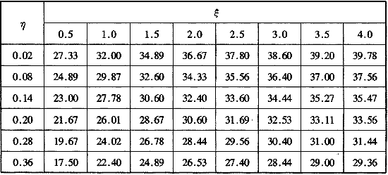 f(ξ,η),β(ξ,η)——壁面年周期波動(dòng)傳熱計(jì)算參數(shù)和壁面熱流超前角度,根據(jù)準(zhǔn)數(shù)ξη值查表H.0.2-1至H.0.2-4;