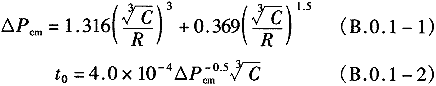 B.0.1 常規(guī)武器地面爆炸空氣沖擊波最大超壓△Pcm及按等沖量簡化的無升壓時(shí)間三角形等效作用時(shí)間t0,可按下列公式計(jì)算確定: