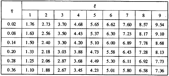 表H.0.2-1 當(dāng)量圓柱體地下建筑年周期波動(dòng)傳熱計(jì)算參數(shù)f(ξ,η)