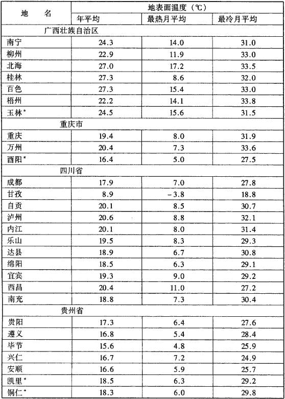 注:帶*者為新增城市,其室外計(jì)算參數(shù)統(tǒng)計(jì)年份為1992年至2001年。大牛工程師