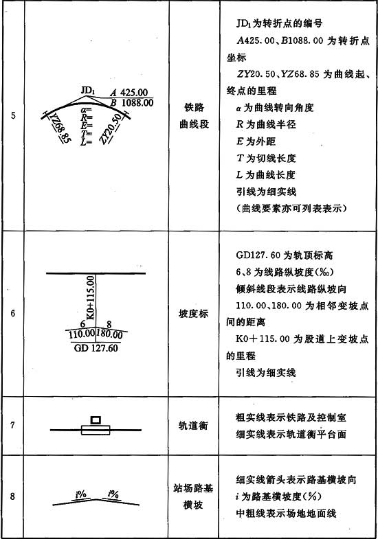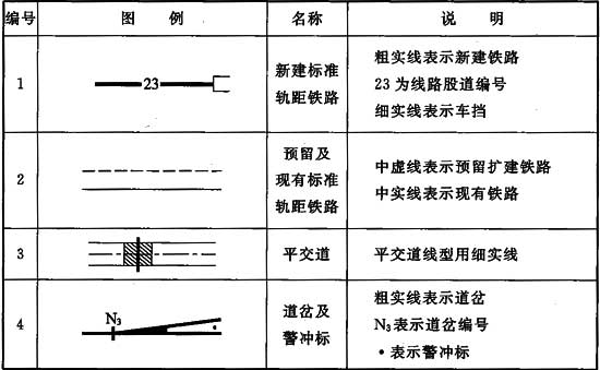 5.0.5 鐵路布置圖例應符合表5.0.5的規(guī)定。