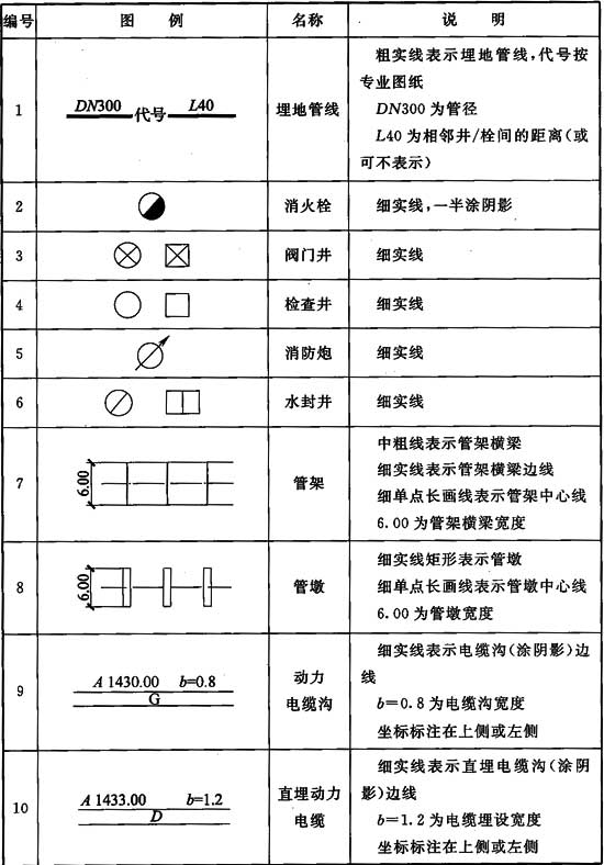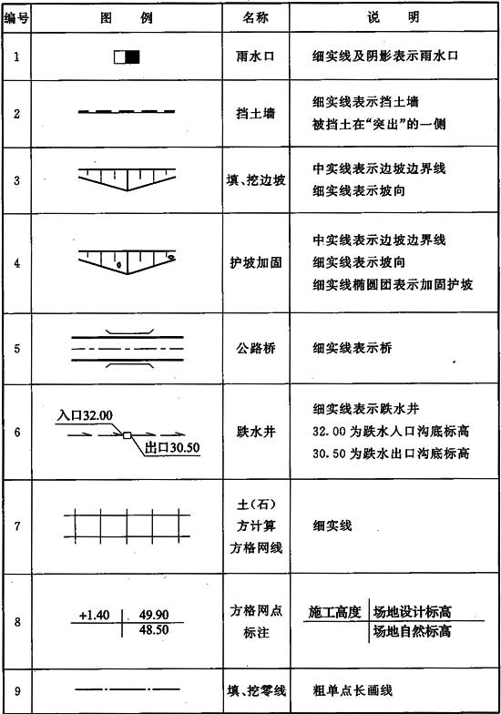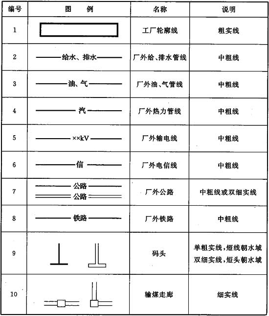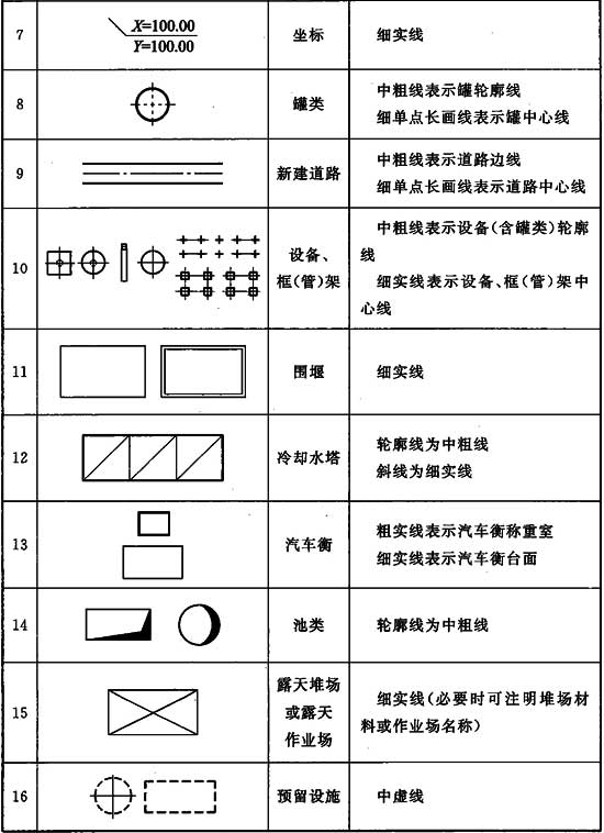 注:改、擴建工程中原有設施的圖例線寬均采用細實線。