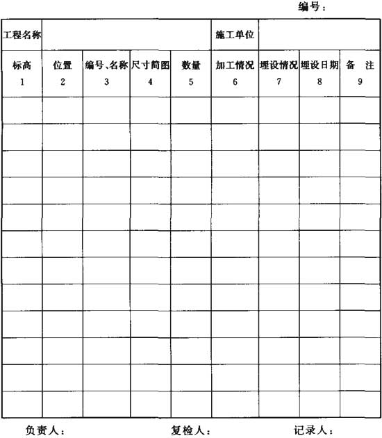 表D-1 滑模施工預(yù)埋件檢查記錄表