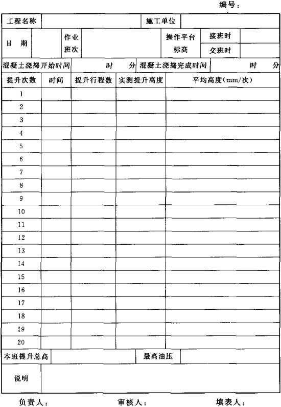 附錄D 滑模施工常用記錄表格
