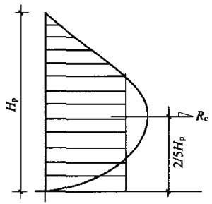 A.0.2 振搗混凝土?xí)r的側(cè)壓力標(biāo)準(zhǔn)值。對于澆灌高度為80cm左右的側(cè)壓力分布見圖A.0.2,其側(cè)壓力合力取5.0~6.0kN/m,合力的作用點(diǎn)約在2/5Hp處。