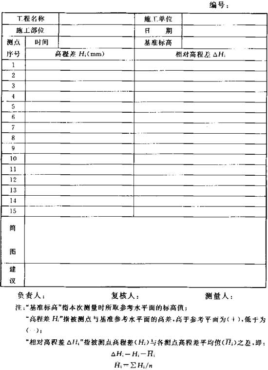 表D-5 滑模平臺(tái)水平度測量記錄表