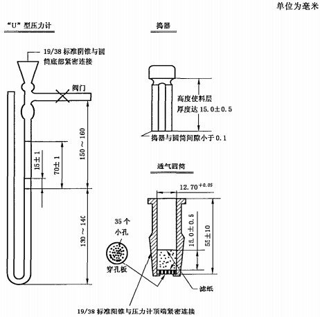 本方法采用的勃氏比表面積透氣儀,分手動和自動兩種,均應(yīng)符合JC/T 956的要求。