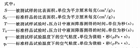 本方法主要是根據(jù)一定量的空氣通過具有一定空隙率和固定厚度的水泥層時,所受阻力不同而引起流速的變化來測定水泥的比表面積。在一定空隙率的水泥層中,空隙的大小和數(shù)量是顆粒尺寸的函數(shù),同時也決定了通過料層的氣流速度。
