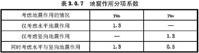 式中 γEh、γEv——水平、豎向地震作用的分項系數(shù),應(yīng)按表3.0.7的規(guī)定采用;