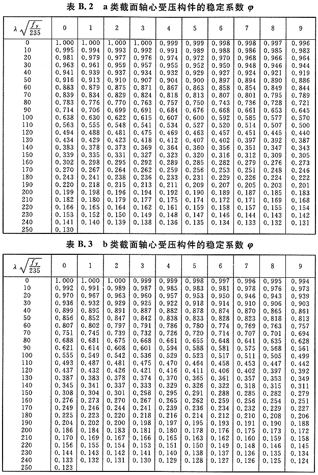 附錄B 軸心受壓鋼構(gòu)件的穩(wěn)定系數(shù)