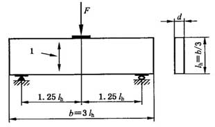 橫紋抗拉強(qiáng)度測試示意圖如圖6所示,橫紋抗拉強(qiáng)度試件應(yīng)包含鋸材完整的橫截面,試件長度lh等于b/3,采用三點(diǎn)彎曲測試方法如圖6所示,加載到破壞為止,記錄最大載荷。