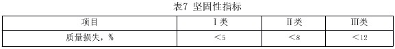 采用硫酸鈉溶液法進(jìn)行試驗(yàn)。再生粗骨料經(jīng)5次循環(huán)后,其質(zhì)量損失應(yīng)符合表7的規(guī)定。