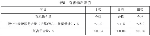 再生粗骨料中有害物質(zhì)含量應(yīng)符合表5的規(guī)定。