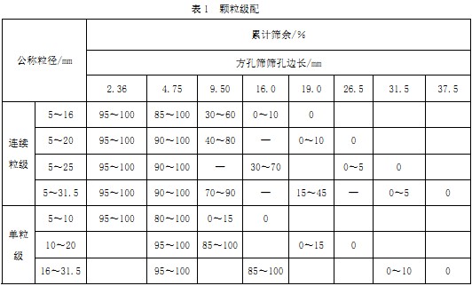 再生粗骨料的顆粒級(jí)配應(yīng)符合表1的規(guī)定。