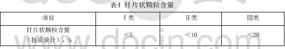 再生粗骨料的針片狀顆粒含量應(yīng)符合表4的規(guī)定。