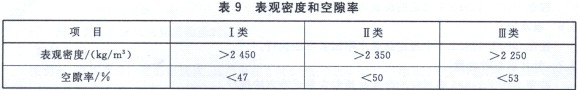 再生粗骨料的表觀密度和空隙率應(yīng)符合表9的規(guī)定。