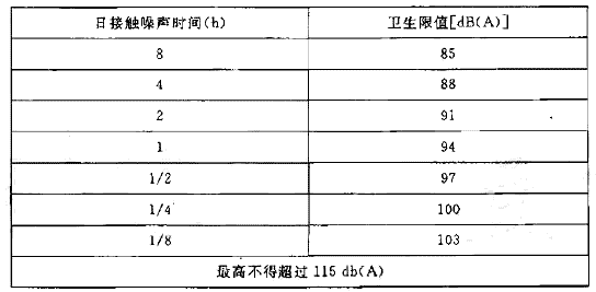 表B-1 工作地點(diǎn)噪聲聲級(jí)衛(wèi)生限值