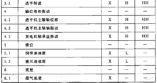 注:1 X-要求項(xiàng)目;H-指標(biāo)為高值;L-指標(biāo)為低值;HH-指標(biāo)為高高值;LL-指標(biāo)為低低值;連鎖指透平機(jī)停機(jī)連鎖。