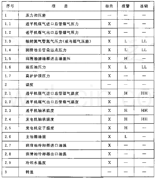 表A TRT系統(tǒng)過程檢測(cè)、報(bào)警及連鎖項(xiàng)目一覽表