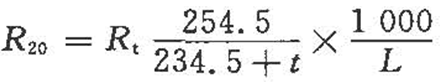 若有必要,可按下列公式換算成導(dǎo)體在20℃、長度為1 km時的電阻。