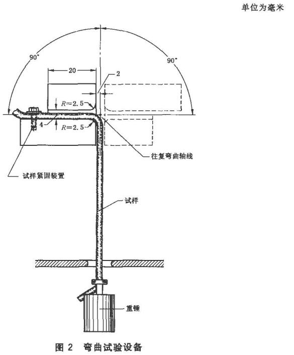 試樣應(yīng)垂直于導(dǎo)體軸線平面作180°往復(fù)彎曲運動,當(dāng)彎曲到極端位置時,應(yīng)與導(dǎo)體軸線的兩邊各呈90°角。