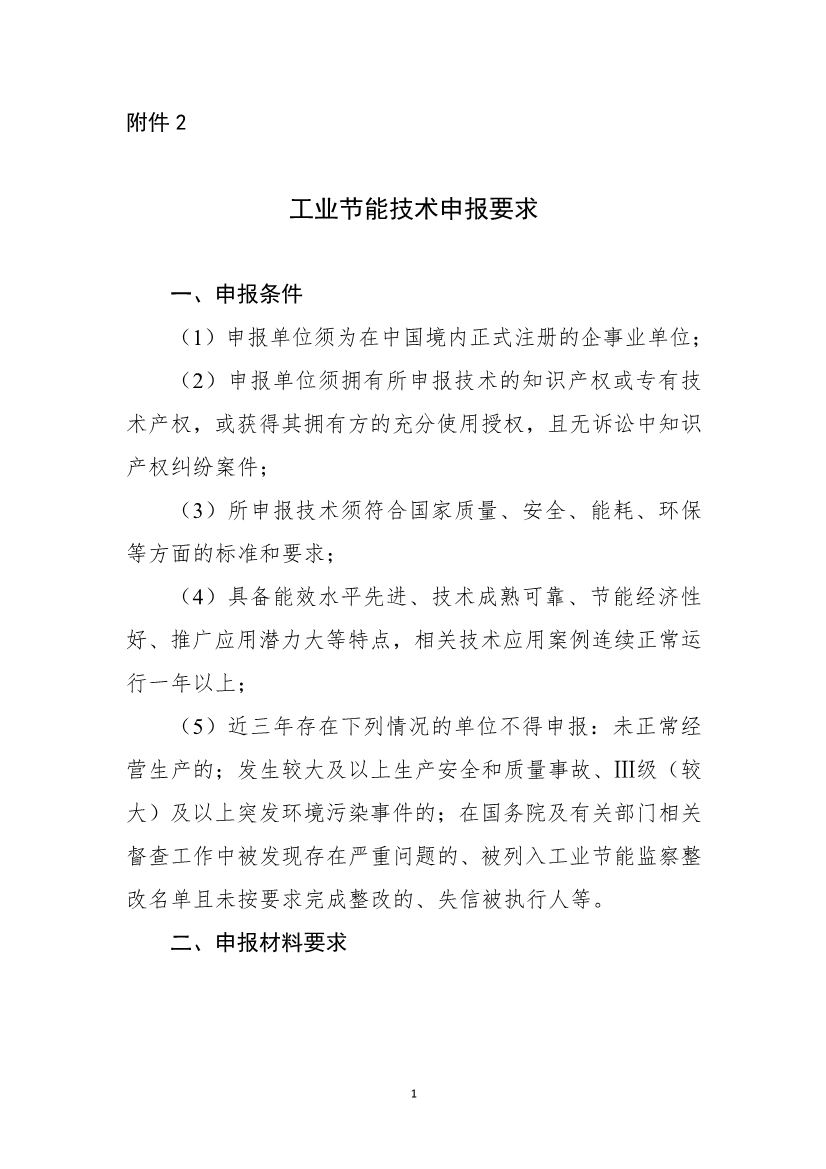 附件2:工業(yè)節(jié)能技術申報要求.doc