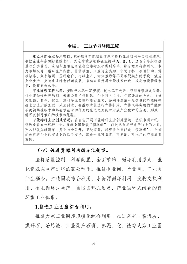 日前,根據(jù)《四川省國民經(jīng)濟和社會發(fā)展第十四個五年規(guī)劃和二〇三五年遠(yuǎn)景目標(biāo)綱要》以及工業(yè)和信息化部《“十四五”工業(yè)綠色發(fā)展規(guī)劃》有關(guān)部署,為加快推動全省工業(yè)綠色發(fā)展,四川工信廳組織編制了《四川省“十四五”工業(yè)綠色發(fā)展規(guī)劃(征求意見稿)》,該意見稿從實施工業(yè)領(lǐng)域碳達(dá)峰行動、推動產(chǎn)業(yè)體系綠色低碳轉(zhuǎn)型、加快能源消費低碳化轉(zhuǎn)型、促進(jìn)資源利用循環(huán)化轉(zhuǎn)型、引導(dǎo)工業(yè)生產(chǎn)清潔化轉(zhuǎn)型、完善綠色制造支撐體系、實施綠色創(chuàng)新攻關(guān)行動、打造川渝協(xié)同發(fā)展新樣本等方面提出了重點任務(wù)和要求。同時,從工業(yè)節(jié)能降碳、資源綜合利用、綠色發(fā)展格局形成、綠色制造能力增強等層面闡述了發(fā)展現(xiàn)狀。詳情如下: