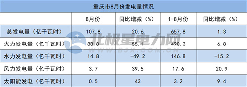 8月份,總發(fā)電量509.3億千瓦時,同比增長8.7%;其中,火電發(fā)電量93.6億千瓦時,同比增長113.5%;水力發(fā)電量408.2億千瓦時,同比減少2.2%;風(fēng)力發(fā)電量5.3億千瓦時,同比增長1%;太陽能發(fā)電量2.28億千瓦時,同比減少3.2%。工作報告_資料共享_縣域經(jīng)濟(jì)