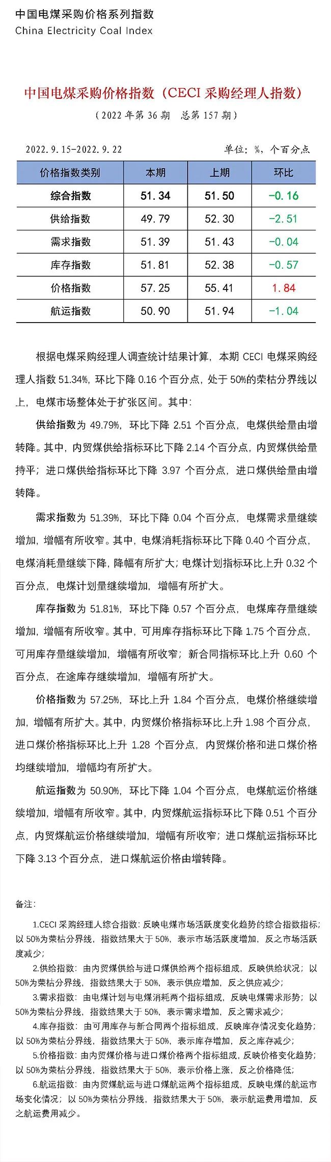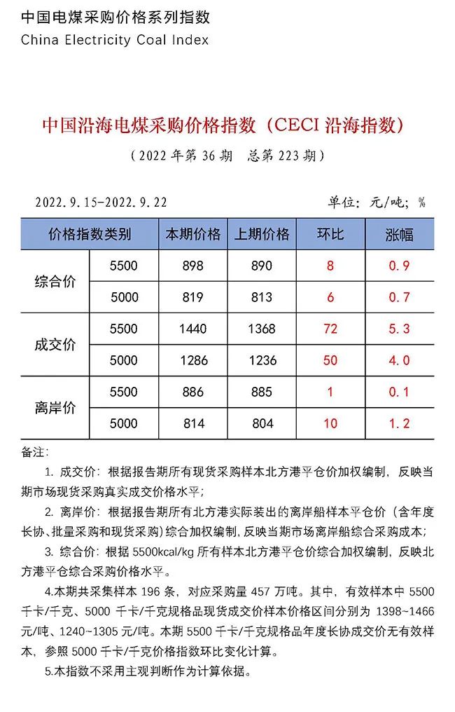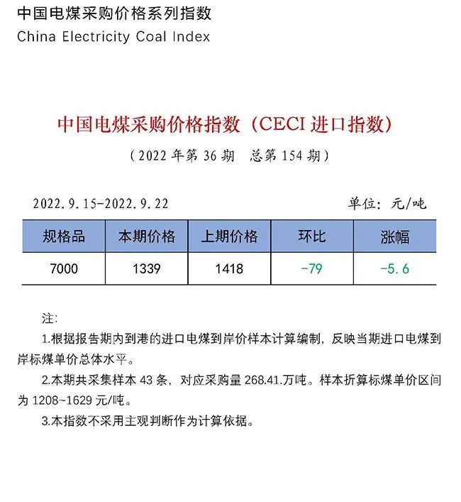 相關(guān)閱讀:中國電煤采購價(jià)格CECI系列指數(shù)(2022年9月15日-9月22日)