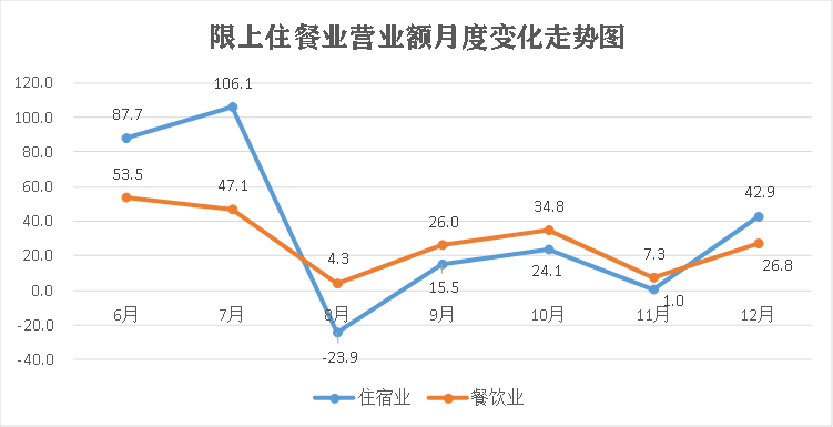 (二)疫情對(duì)住餐業(yè)影響明顯。從住餐飲當(dāng)月增速的波動(dòng)來(lái)看,8月和11月疫情多點(diǎn)散發(fā),管控從緊,增速與相鄰月份變動(dòng)較大,8月住宿業(yè)增速-23.8%,較7月增速回落130個(gè)百分點(diǎn),低于9月39.4個(gè)百分點(diǎn);餐飲業(yè)增速4.3%,較7月增速回落42.8個(gè)百分點(diǎn),低于9月21.7個(gè)百分點(diǎn)。11月住宿業(yè)增速1.0%,較10月增速回落23.1個(gè)百分點(diǎn),低于12月41.9個(gè)百分點(diǎn);餐飲業(yè)增速7.3%,較10月增速回落27.5個(gè)百分點(diǎn),低于12月19.5個(gè)百分點(diǎn)。模版下載_十四五_模版下載