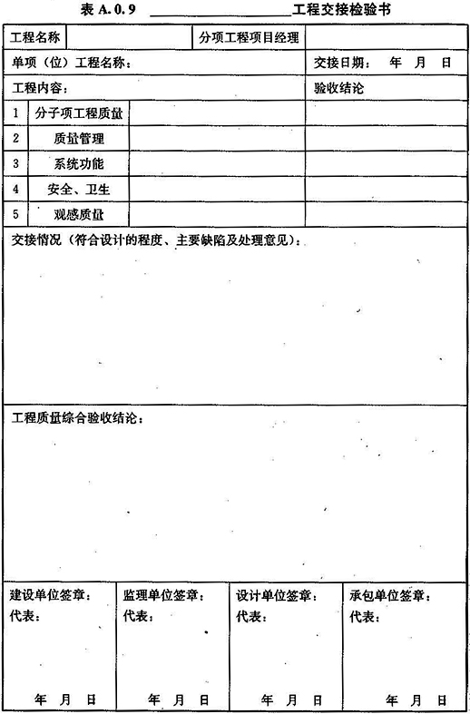 A. 0. 9 工程交接檢驗(yàn)書的格式應(yīng)符合表A. 0. 9的規(guī)定。