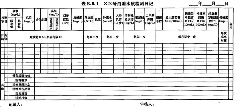 附錄B 浴池池水凈化處理維護(hù)管理內(nèi)容及格式