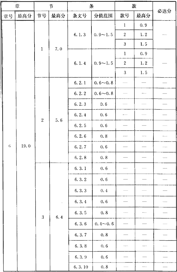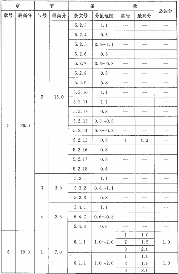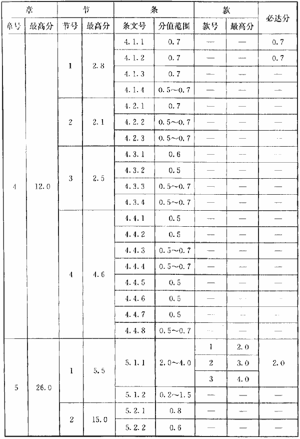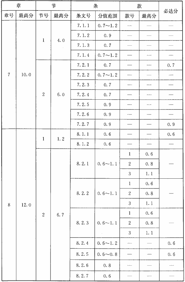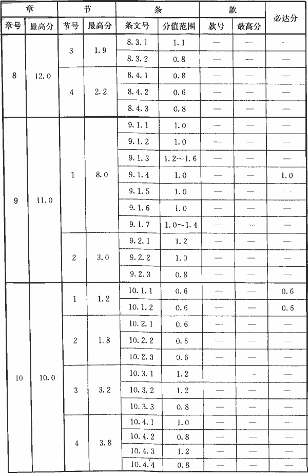 表A.0.2 條文分值
